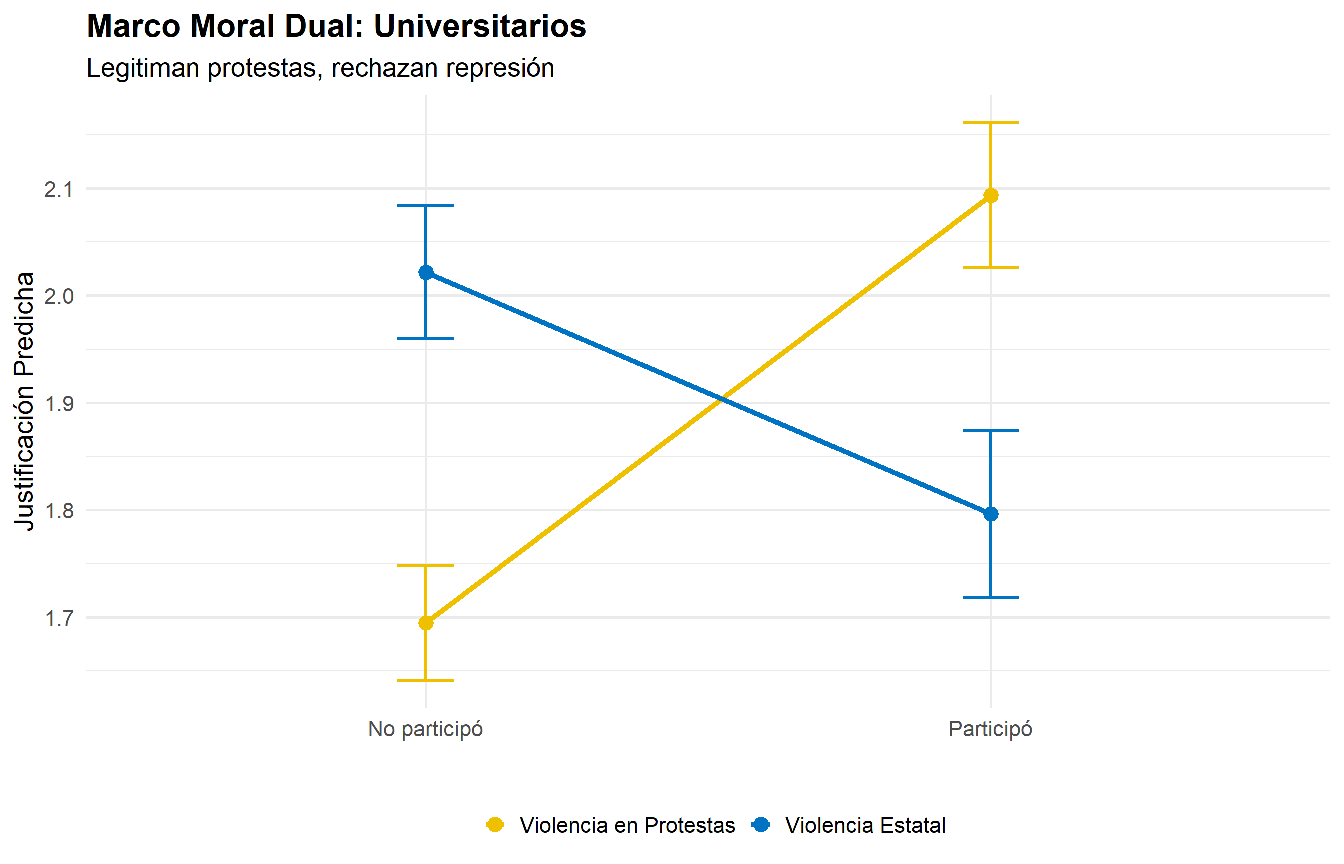 \(H_{3a}\): Universitarios participantes muestran mayor justificación de violencia por manifestantes vs universitarios no participantes